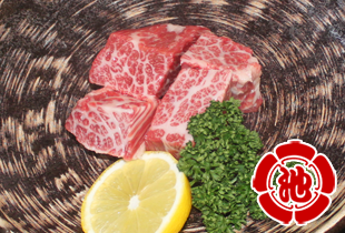 近江牛の中でもサシがよくはいった部位をサイコロ状にカットしたステーキです。その時々で使用部位は異なりますが、とても柔らかい部分のみを使用しています。